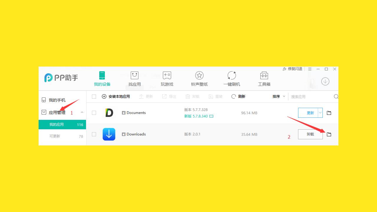 用数据线链接电脑,打开pp助手,点击应用管理,找到Downloads在点击后面文件夹图标!
