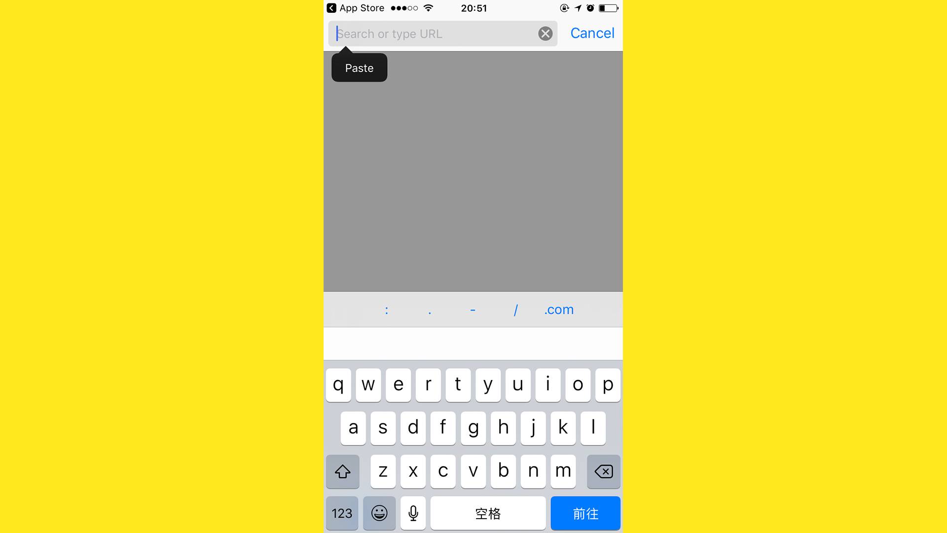 4、打开App后,在上方地址栏粘贴(Paste)刚刚复制的链接!