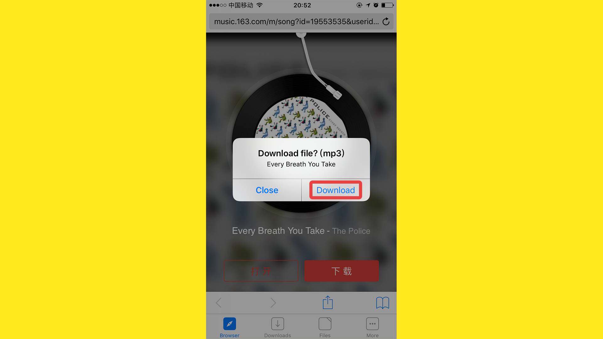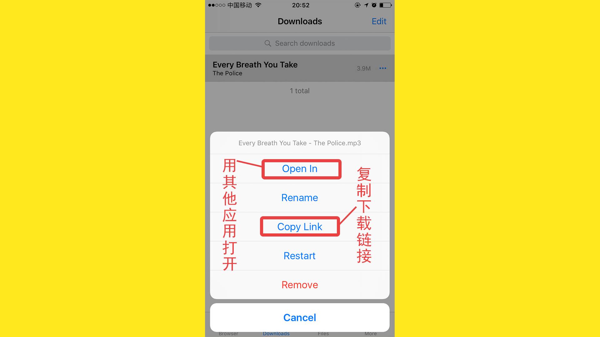 7、可以将下载的音乐,在其他应用里面打开或发给好友,也可以复制链接发送给电脑在电脑端下载!
