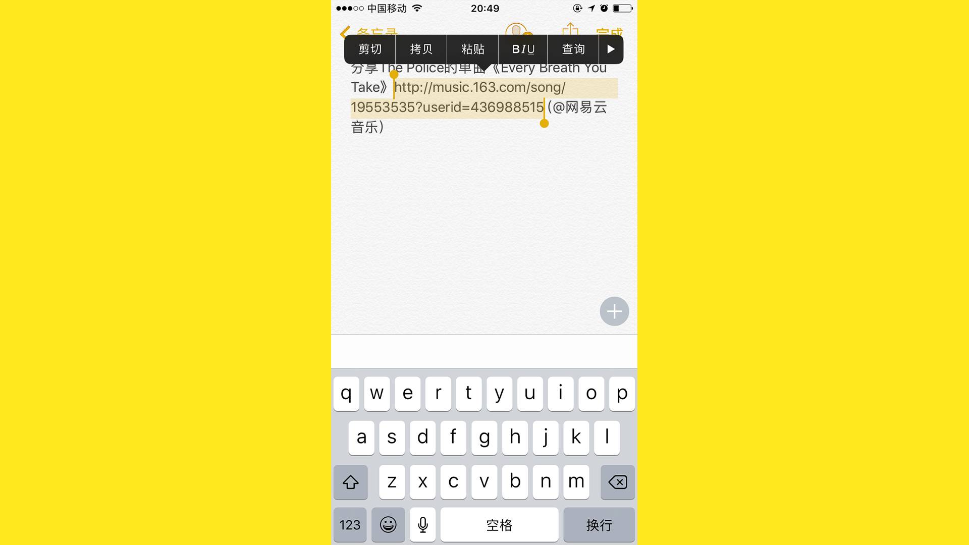 2、将复制下来的链接,粘贴到备忘录,复制里面链接部分!
