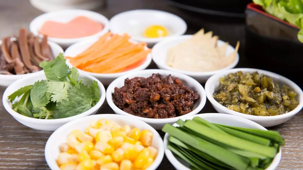 挑选新鲜猪骨、鸡骨过数十小时熬制而成的汤底