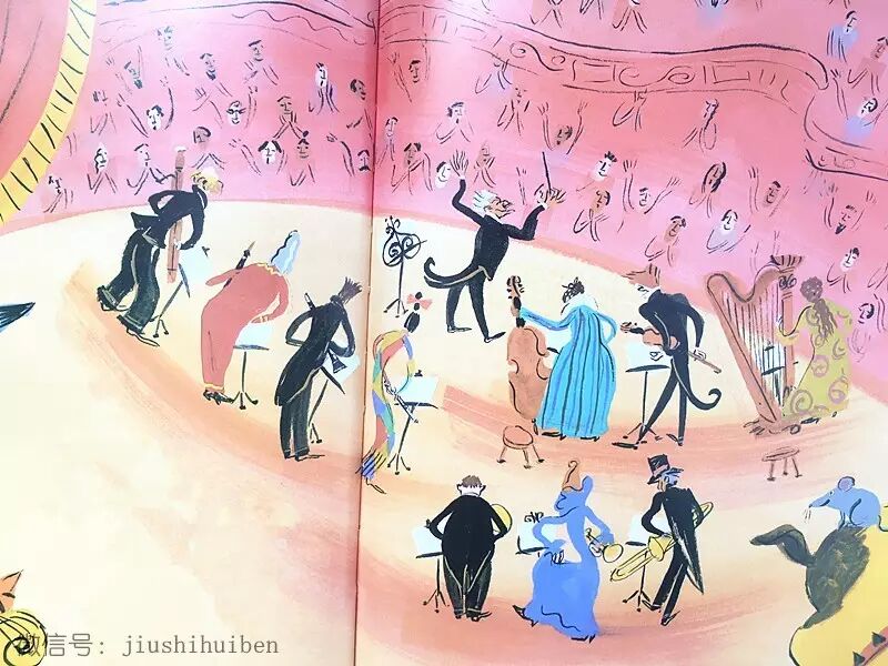 文字简练而诙谐,色彩温暖而艳丽,逐一介绍10种乐器,从独奏,到二重奏,三重奏,随着乐器的逐渐加入,一场隆重的音乐会逐渐呈现出来。内容连贯一气呵成,读后又会让人意犹未尽。