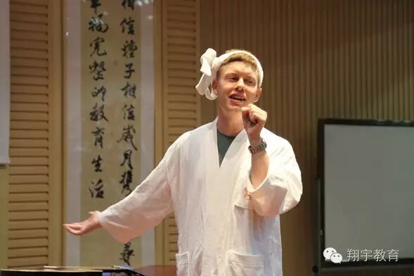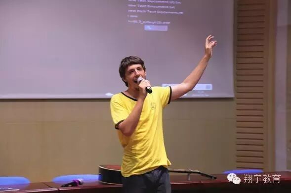 2016年7月16日下午,翔宇世界领导力夏令营的孩子们在外教老师的带领下,感受了一堂地道的英语音乐课。课程一开始,外教们用集体舞的方式开场,鼓励同学们动起来,“Come on ,baby.”Philip Lohre(菲利普·洛瑞)老师带着自己的吉他,自弹自唱了一首地道的英文歌曲,接着用中文演绎了一首周杰伦的《菊花台》,赢得了在场同学们热烈的掌声。Scott Chapman(斯科特·查普曼)裹着睡袍,脑袋上还绑着绳子出现在了现场,唱起了《let it go》,Scott Chapman说,之所以选择这样子的服饰授课,是因为首先它很有趣,同时还能让同学们上课更加集中精神。一同参与夏令营的翔宇老师陈晓琼说:“夏令营给学生展示了英语学习的不同方面,让学生了解到英语不是意味着考试的一门学科,而是交流的工具,英语可以很有意思很好玩。”陈老师还说,愿意将这种变化带到自己的英语教学中去。