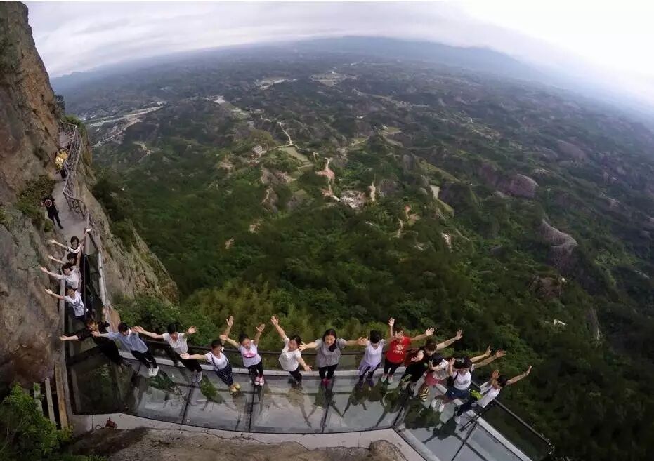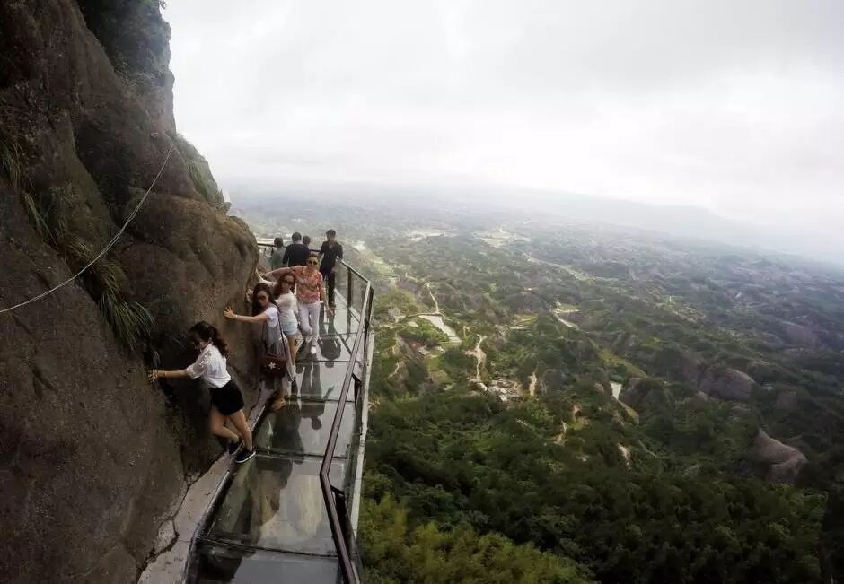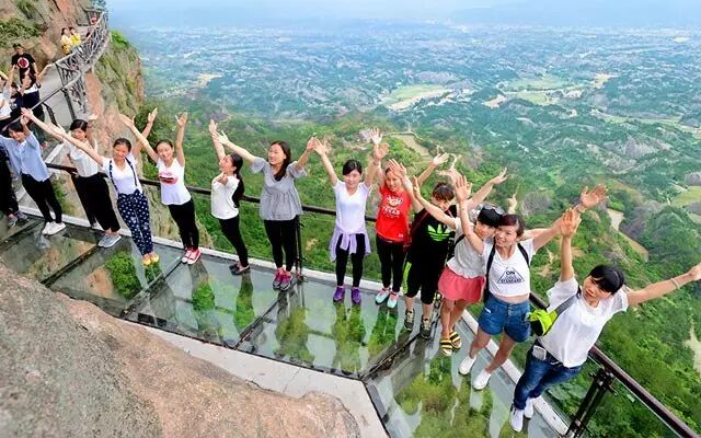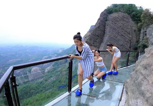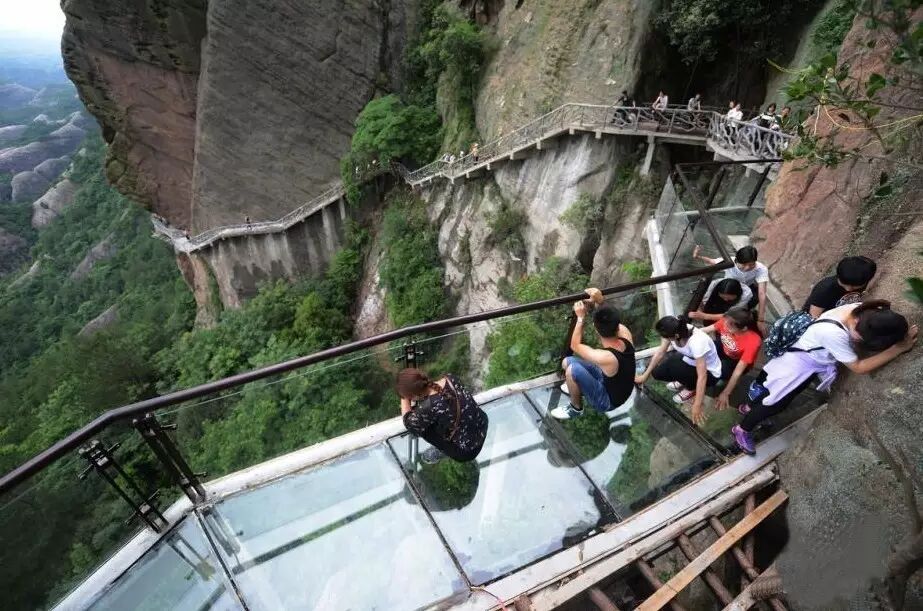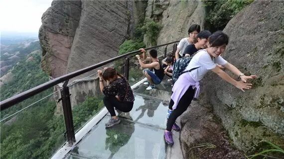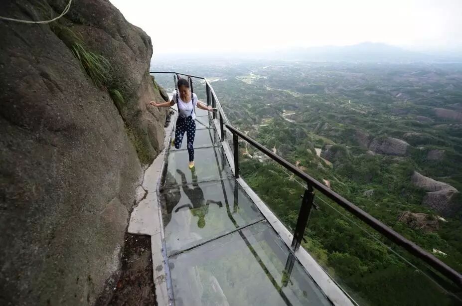 ▲一边心惊胆战的过着玻璃栈道,一边踩出了优美的音符!