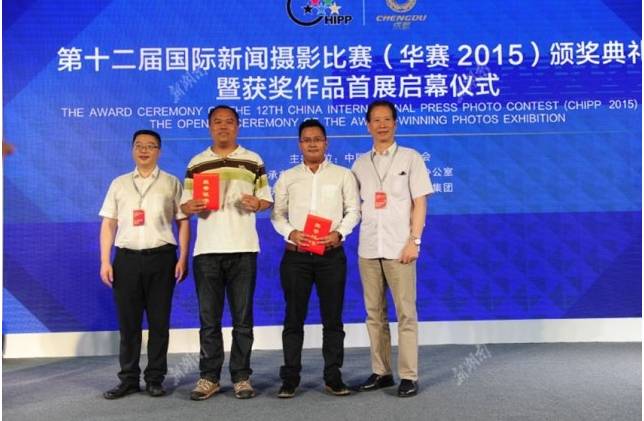 ▲湖南日报社记者郭立亮(左二)在现场领奖