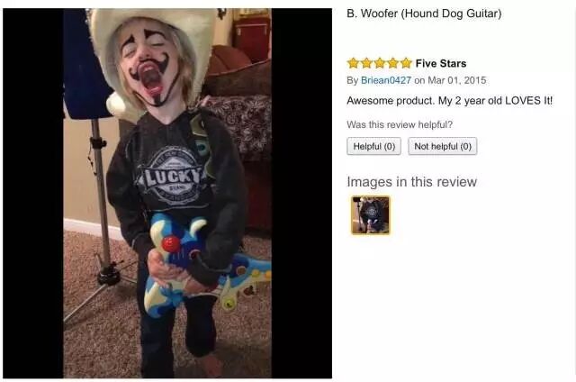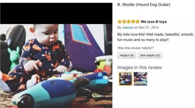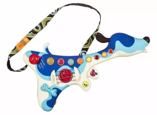 “我给孩子买过好几个吉他了,尤克里里有两个,电子的有一个。每次看电视上有人用吉他表演的时候他就会选尤克里里。但是他自己玩的时候,更喜欢电子的,能有音乐的。但是市面上既有琴弦、又自带音乐的玩具吉他太少了,琴弦还有音效的估计只有B.Toys的小狗吉他这一款了。吉他是小朋友满足表演欲的最好用的玩具,但是不可避免的也摔得很厉害,大部分电子类玩具的材质都比较脆弱,摔几次就只能发出噪音了。B.toys这款既能弹奏又能播放内置歌曲,而且材质非常厚实,简直是必入。”