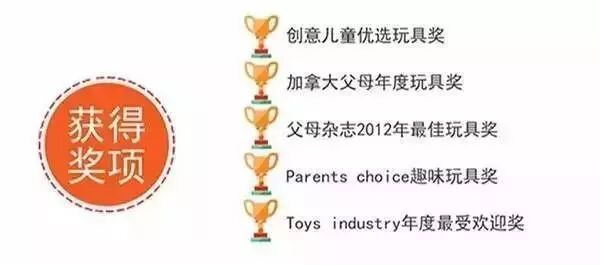 这款B.Toys小狗吉他曾获得的多项国际玩具大奖项: