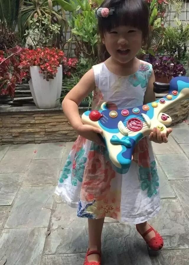 母亲节的时候,我发微博说,我收到的母亲节礼物是妞的弹唱,其实就是小妞一边拨弄小狗吉他的琴弦,一边唱“床前明月光”、“红豆生南国”、“Twinkle twinkle”……