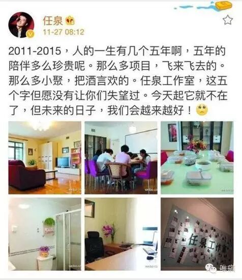 11月27日,任泉在微博宣布任泉工作室解散,同时也缅怀了近几年工作室发展中一些难忘的瞬间。