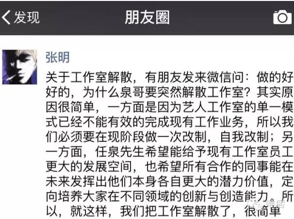 关于解散工作室的理由,任泉助理张明是这样说的。