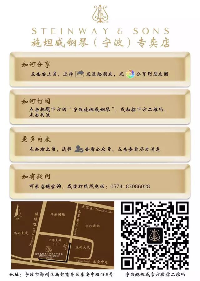 更多音乐信息敬请关注施坦威宁波官方微信平台(Steinway宁波)