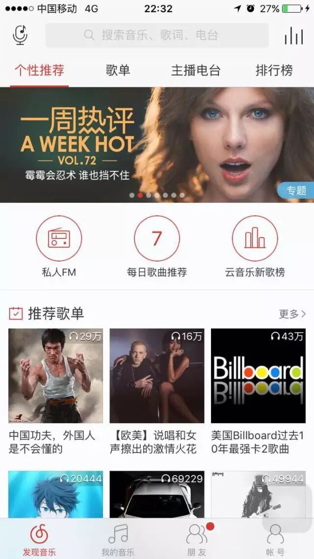 网易云音乐:曲库全面,短板少且都不致命,DIY歌单操作方便,适合音乐杂食动物,尤其是爱好各种大众小众音乐(除了国语独立音乐)的用户,基本在这里可以满足大半需求。