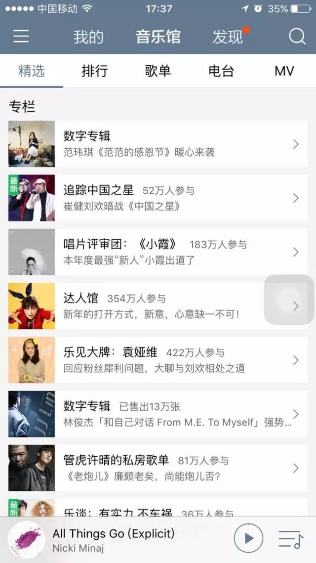 虾米音乐:音乐人生态好,乐馆科普棒,适合对音乐有一定求知欲的国内小众音乐爱好者,以及,嗯,五月天粉丝。