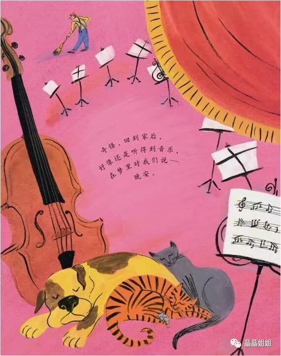 弦乐器像在哼唱一首完美的诗,木管乐器温柔得像一只绵羊,铜管乐器好像刚吃饱,特别有力气。啦!啦!啦!所有的乐器一起奏出美妙的旋律。