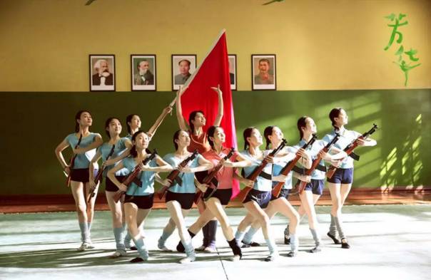 《芳华》开场就是文工团的一片欢歌笑语,舞姿曼妙的文艺兵在教室里灵活自如,窗外阳光打在这群朝气蓬勃的年轻人的脸上,一切都是那么的岁月静好,另一边乐手们熟练操演着各类富有时代特色的音乐。西方管弦乐搭配着中国传统民族乐器,为芭蕾舞伴奏,是那个时代的特殊产物。