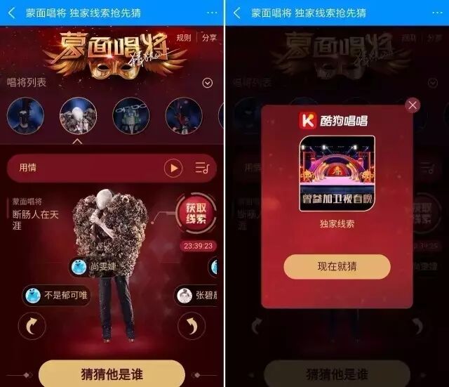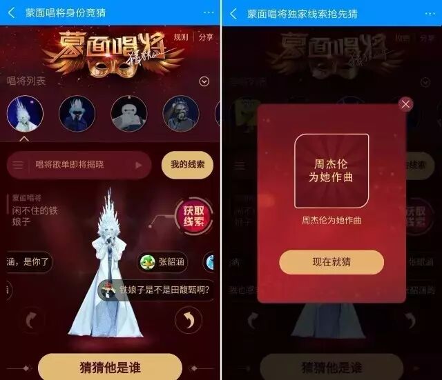 实现“独家线索+唱将竞猜”二合一的互动模式
