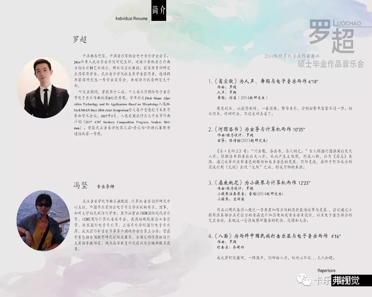 ,中国音乐家协会电子音乐学会会员。2014年考入武汉音乐学院研究生部,攻读计算机音乐作曲方向全日制艺术硕士,师从冯坚副教授。国家教育部研究生国家奖学金、武汉音乐学院校友奖学金获得者,连续两年获得研究生一等学业奖学金,并被评为优秀研究生干部。