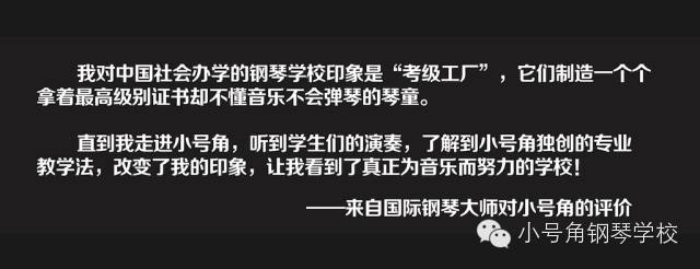 南京小号角钢琴学校,是南京地区唯一一家以专注钢琴教学研究为主的专业化学校。学校独立研发了小号角钢琴教学法,同时开发了技术和理论相互衔接的核心课程,提高了钢琴教学的宏观性,为钢琴学习中最重要的前五年打下了坚实基本功。小号角还针对钢琴教学行业特殊性,独立研发出一整套教学体系,确保学员从入学到毕业能够系统而不间断地学习。小号角尊重钢琴教学的自然规律,推崇以追求音乐性为根本,培养了一批音乐表现力丰富的琴童。小号角已成为广大琴童、家长和教师心目中的著名钢琴教育品牌。学校负责人多次被评为南京市“先进工作者”、“优秀校长”等荣誉称号。学校也多次荣获“江苏省著名钢琴教育品牌”、“江苏省最具影响力的钢琴学校”等荣誉称号。近年来,小号角正在为把世界级优秀教育和音乐资源带给更多人而积极努力。成功主办了世界级钢琴家的音乐会,主办了国际钢琴大师和教育家的大师班等,主办了现代教育理念和教学方法的师资培训。同时,通过互联网平台让全国各地的琴童和老师们认知到钢琴教学的规律、方法,避免学琴走弯路的同时,大大提高了教琴和学琴的效率。小号角还为极具音乐天赋的琴童提供了世界一流钢琴大师的资源对接,为钢琴教学搭建了更高、更专业的教育平台。