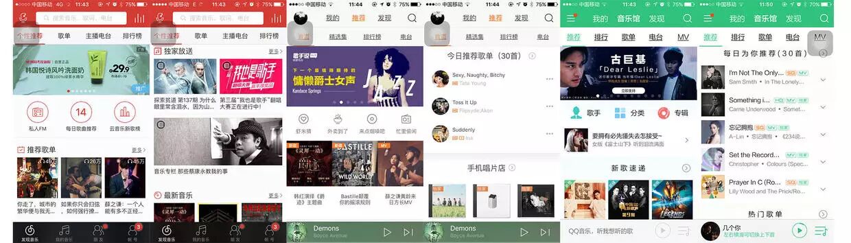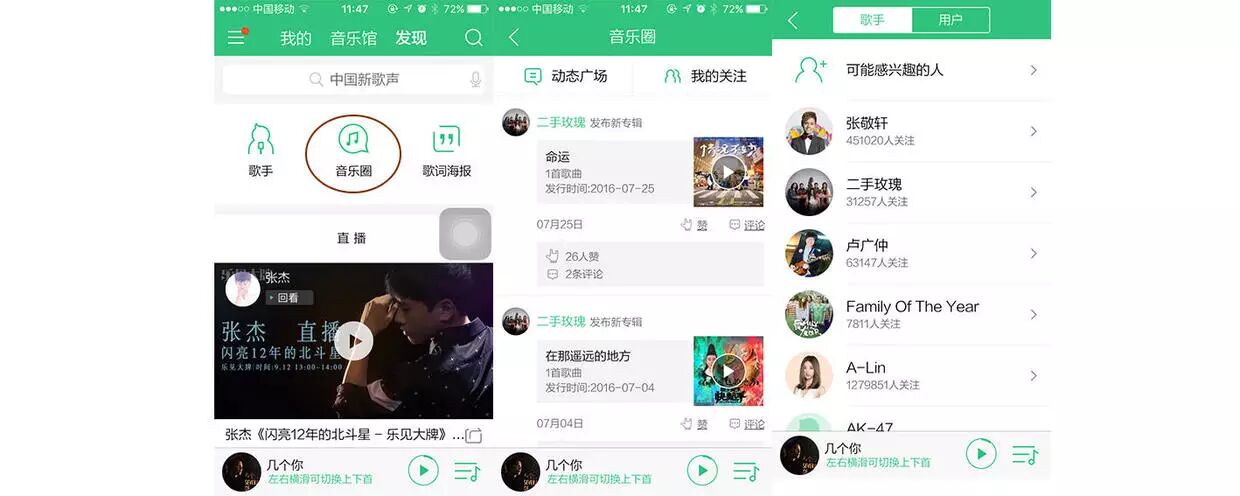 QQ音乐在曲库资源总量领先,云音乐擅长于曲库资源“再创造”,虾米音乐思考着“版权不够,独立歌手来凑”。