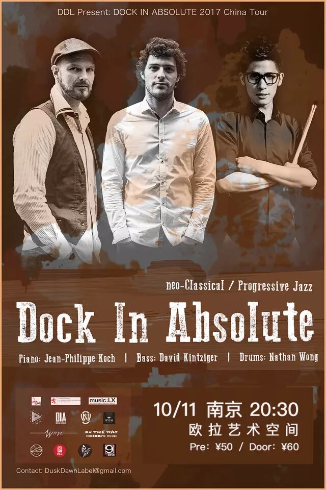 2012年,源于对爵士音乐的热爱,三位极具才华的青年走到了一起,组成了Dock in Absolute乐队。成员皆是学院派的职业音乐家,分别是打击乐手Michel Meis、贝斯手David Kintziger和钢琴家Jean-Philippe Koch。乐队主要演绎钢琴手Jean-Philippe的原创曲目,作品完美融合了前卫爵士、古典乐、摇滚乐以及电影音乐,因此带来独具特色、情绪饱满、充满旋律的开放式爵士。