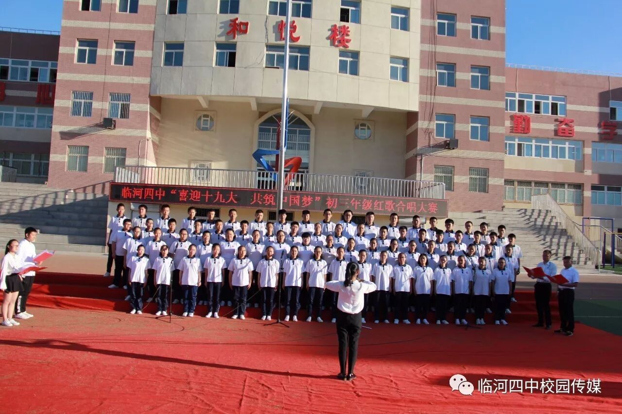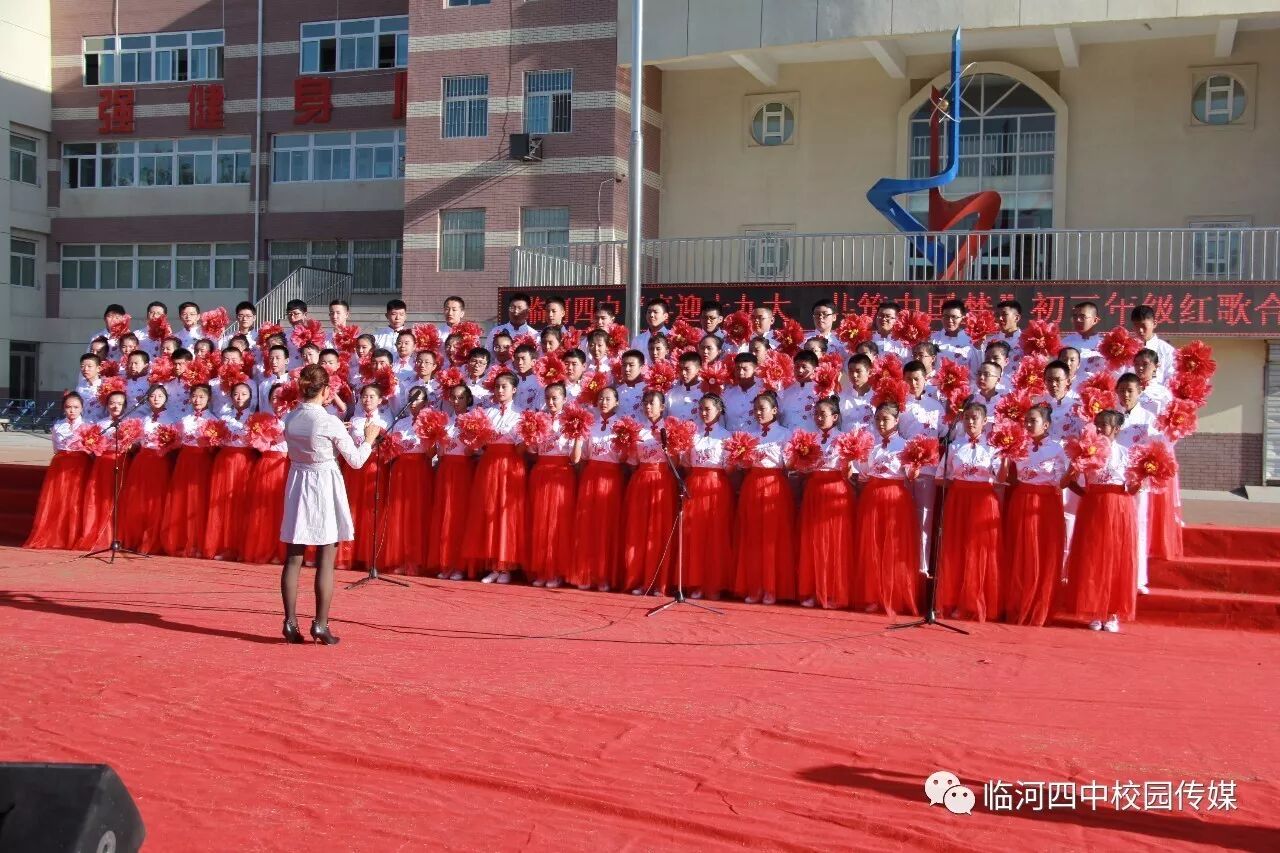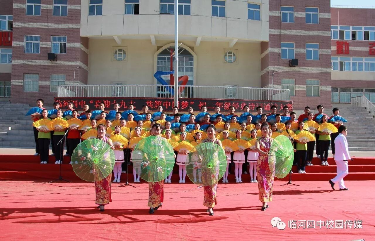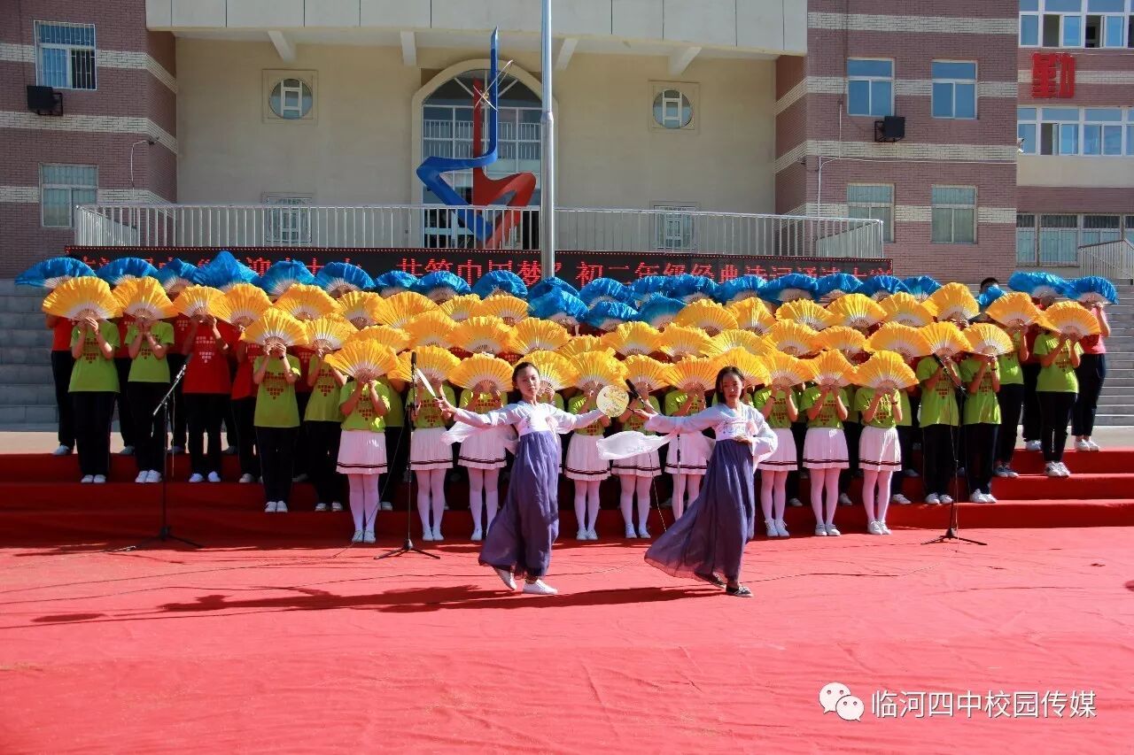 2017年9月27日,临河四中最为盛大的第六届和雅文化艺体节——经典诗文诵读和红歌大合唱竞赛热烈开幕。两项大型活动班班参与、人人参与、师生参与。师生们或吟诵经典或引吭高歌,声情并茂,意气风发,铿锵有力,游响停云。沉淀文化底蕴,陶冶高雅情操;继承红色文化,畅想美好未来。在团委的认真组织下,各班主任精心设计,辛苦排练,用尽心思让展演出彩出新,活动过程丰富了课余生活,增进了师生情感,凝聚力班级力量,收获了育人效果。一场校园文化的盛宴,一组优雅动听的育人乐章。