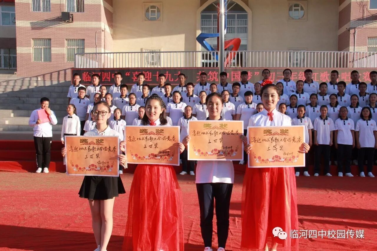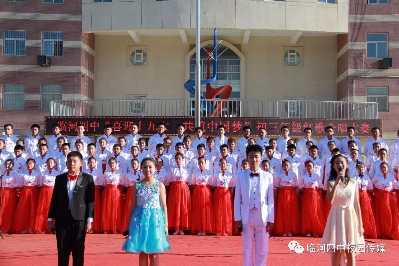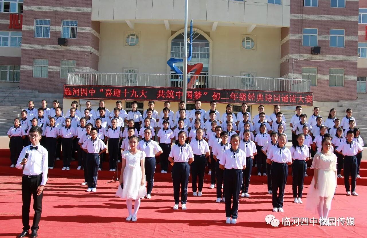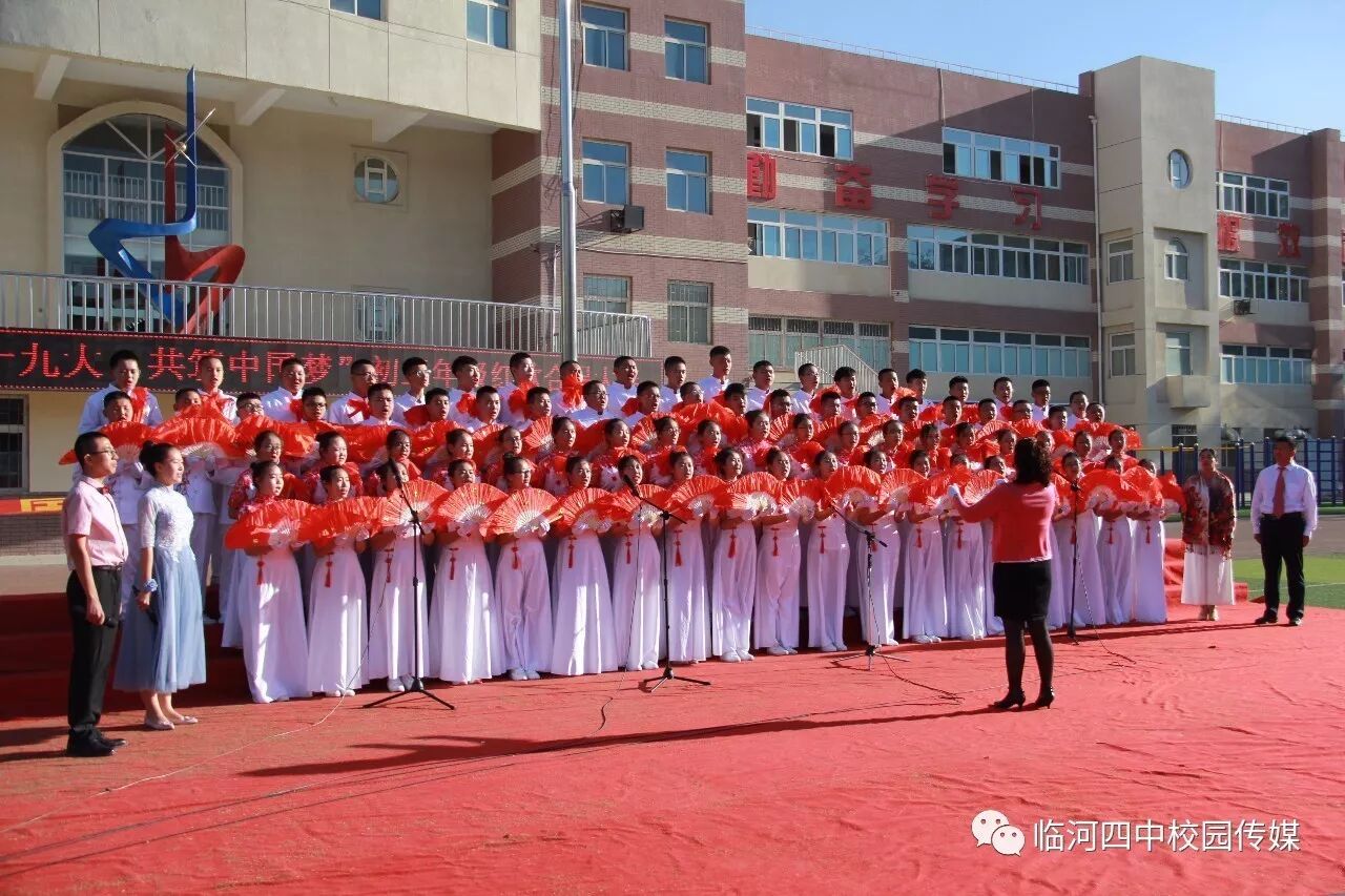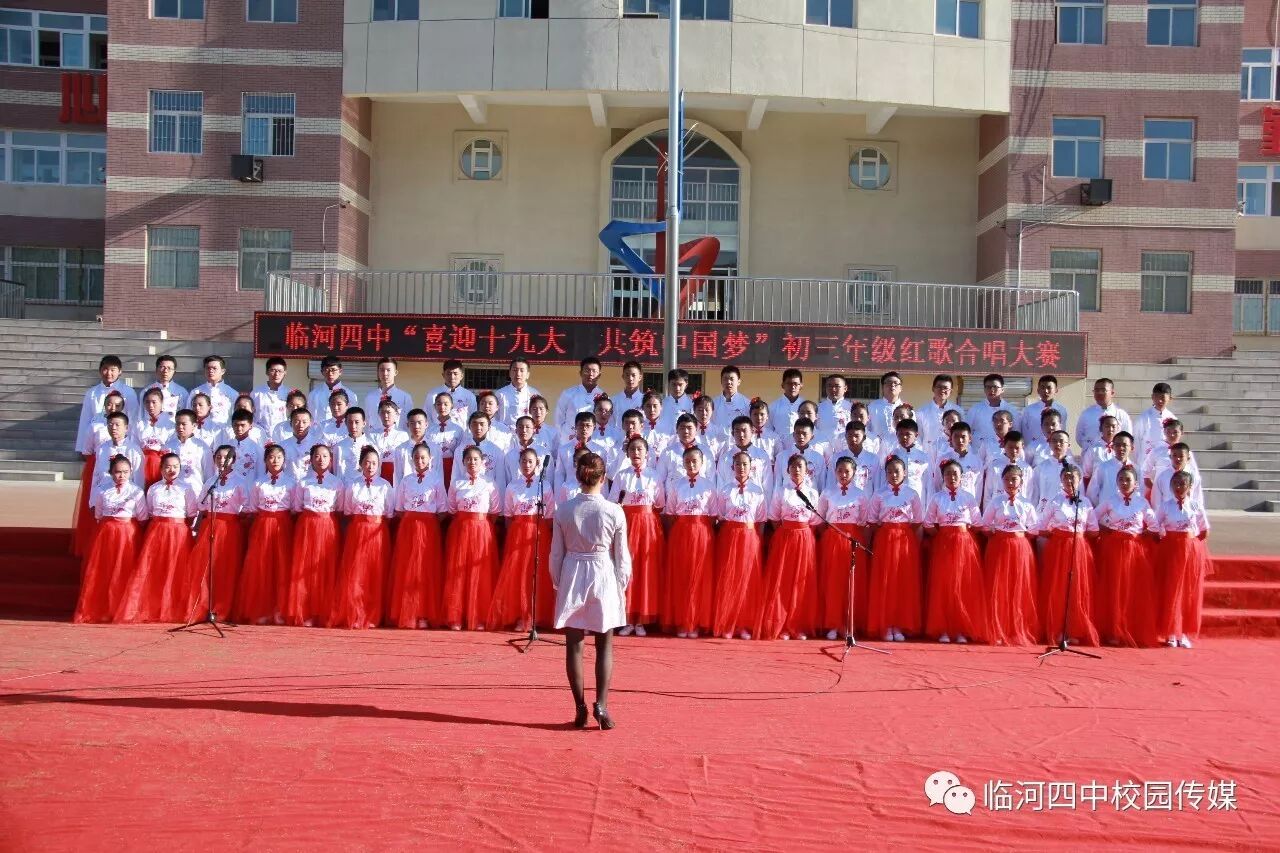 2017年9月27日,临河四中最为盛大的第六届和雅文化艺体节——经典诗文诵读和红歌大合唱竞赛热烈开幕。两项大型活动班班参与、人人参与、师生参与。师生们或吟诵经典或引吭高歌,声情并茂,意气风发,铿锵有力,游响停云。沉淀文化底蕴,陶冶高雅情操;继承红色文化,畅想美好未来。在团委的认真组织下,各班主任精心设计,辛苦排练,用尽心思让展演出彩出新,活动过程丰富了课余生活,增进了师生情感,凝聚力班级力量,收获了育人效果。一场校园文化的盛宴,一组优雅动听的育人乐章。