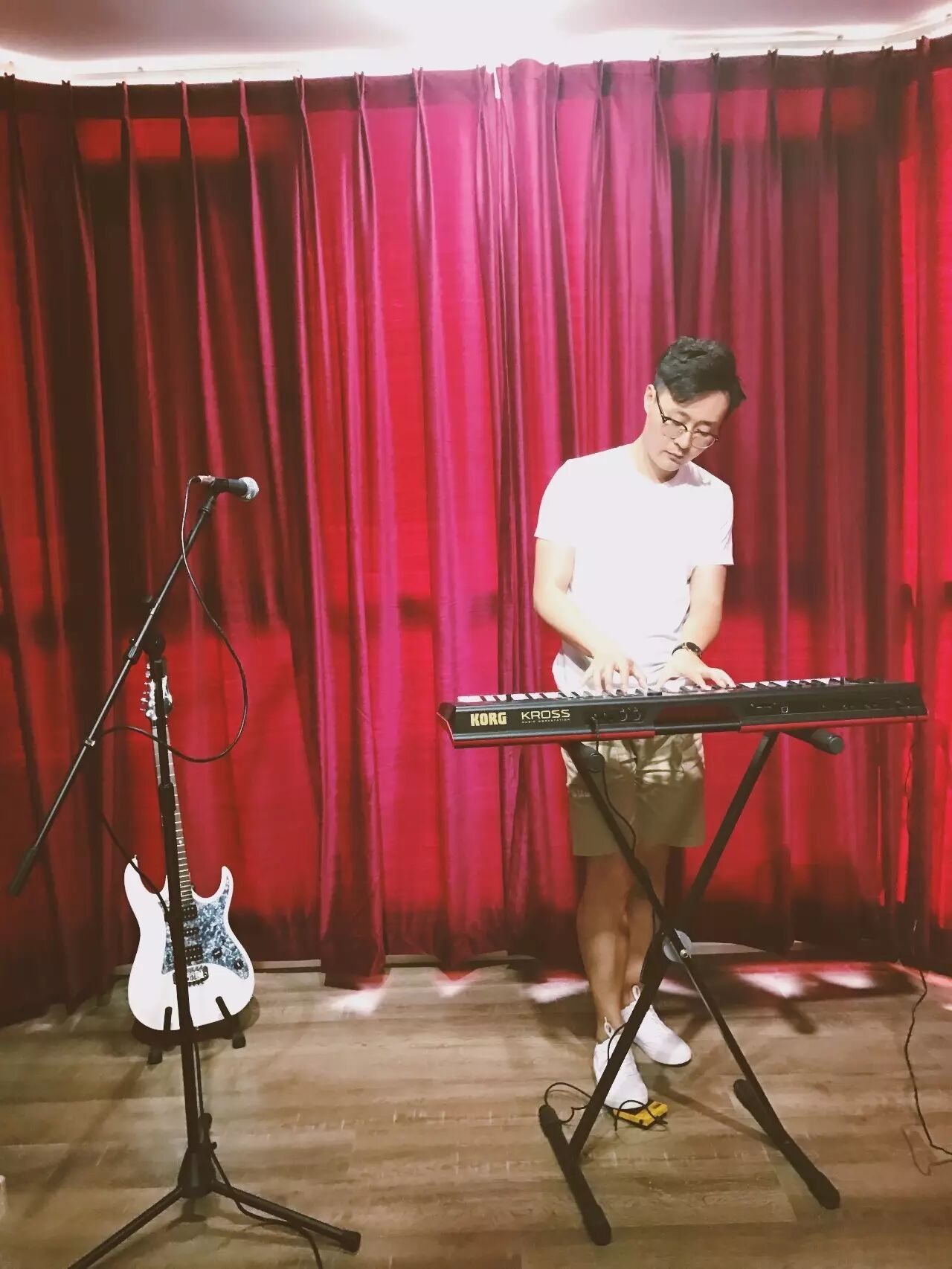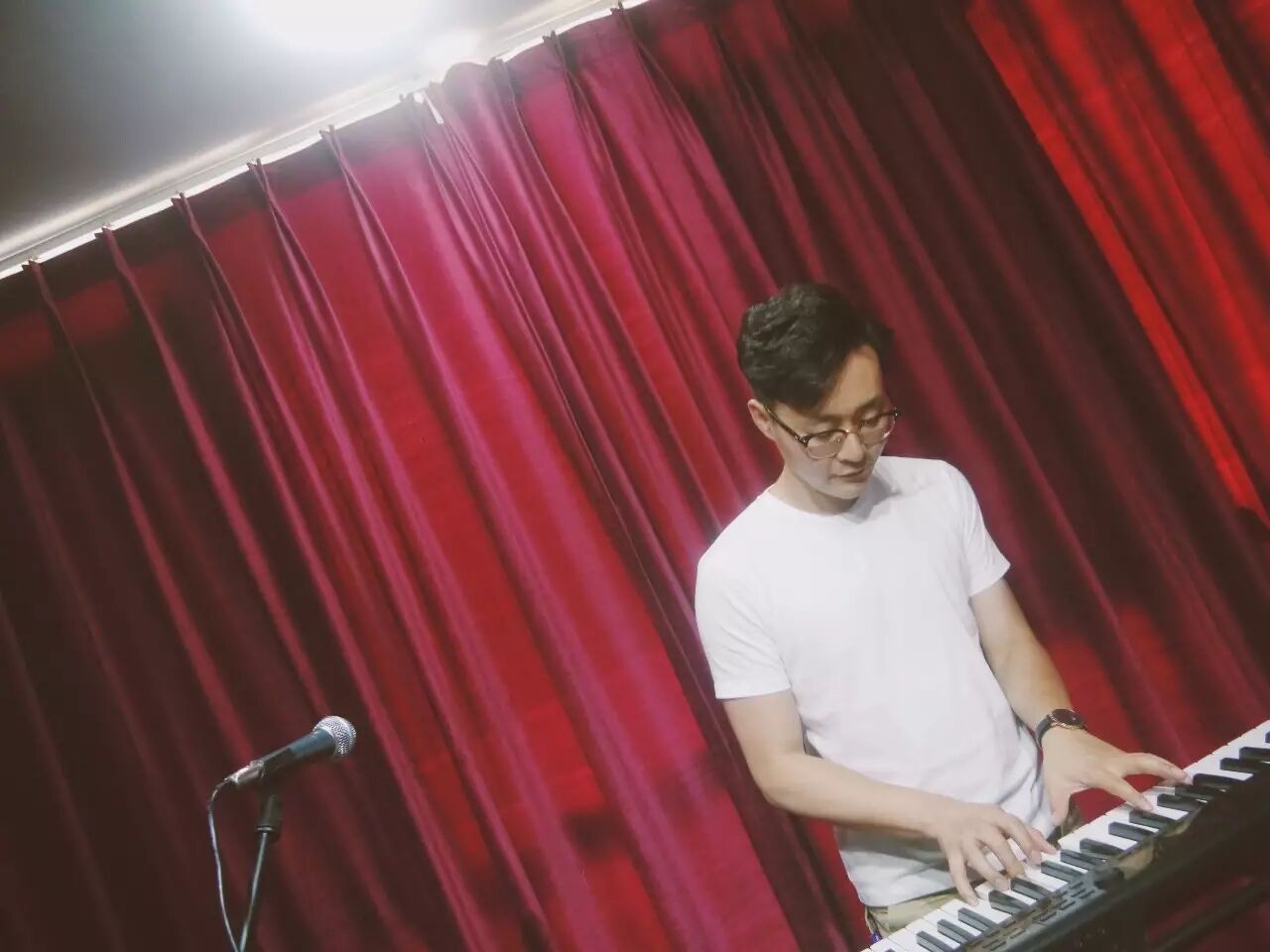 站在舞台上,握住话筒,感享受着聚光灯从头顶打下来的感觉,自己也分分钟变成音乐人了一样!,希望每一个过来的朋友都可以享受这种音乐的感觉,这种美好是无法言喻的!