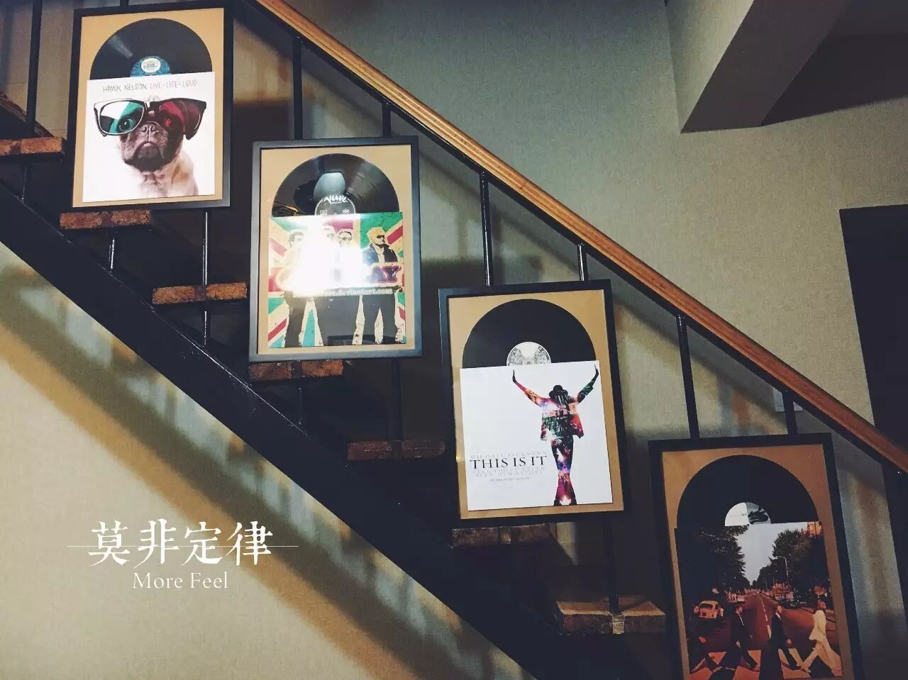 熟悉的黑胶,这次贴在了楼梯上,这意味着什么?----这意味着这是个复式的大房子!天!你们太豪了吧!