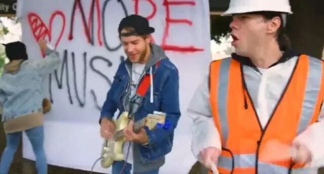 这就是短片《来点音乐当调料》,小伙的一段奇遇发生在追赶小偷的途中,被奇怪的音乐所吸引,忘记自己被抢的钱,居然和几个工人一起律动起来,动次打次,动次打次,连梯子、木桶就算是吸尘器也可以用来搞音乐。