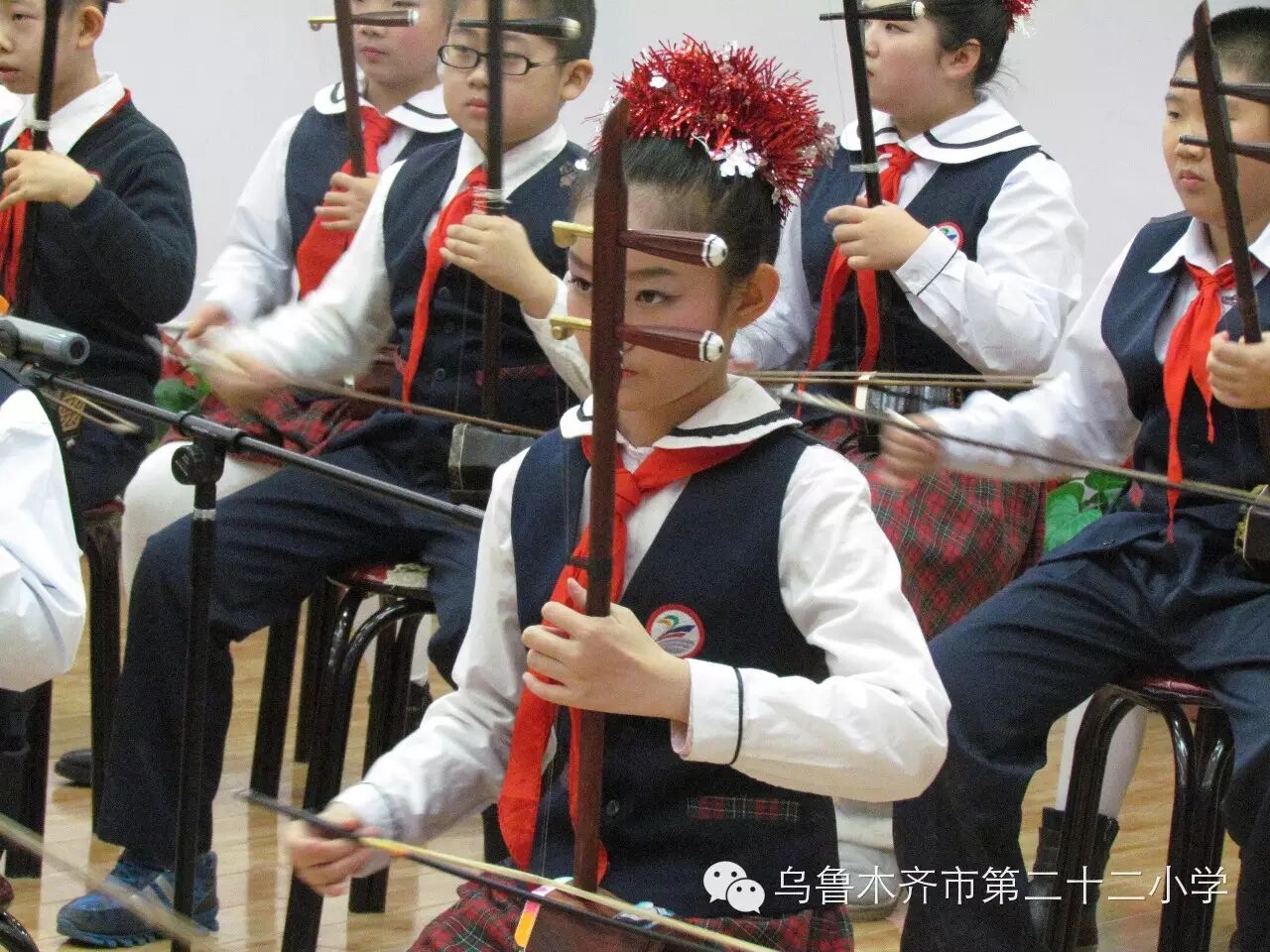 在乌市第二十二小附近居住的居民,常常能听到从校园内传出悠扬的民乐声,这是乌市第二十二小民乐团的成员们正在教师的指导下进行民乐演奏练习。乌市第二十二小首届民乐团成立于2014年4月,在学校领导的关怀关心下,在班主任老师们的积极配合下,有各年级同学们的积极参与,涉及的乐器有二胡、古筝、小提琴、阮、葫芦丝、竹笛等。