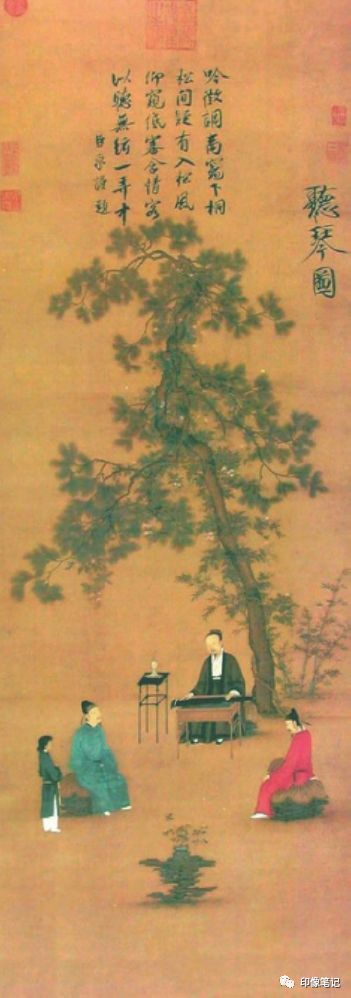 宋徽宗的传世名画《听琴图》描绘了徽宗身穿常服,端坐于青松之下信手弹琴的场景;而《文会图》中,徽宗召集文人学士,在御花园内琴诗宴饮,其情其景,令人向往。