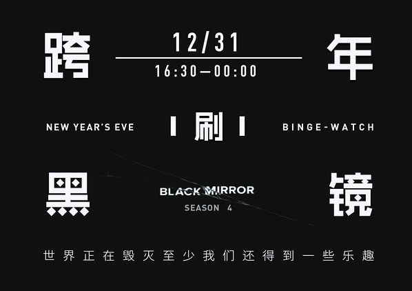 2017年的最后8小时,连看6集《黑镜》,请做好“怀疑人生”的心理准备,用最“丧”的姿态迎接新的一年。最后还可以喝着小酒交流一下心得~