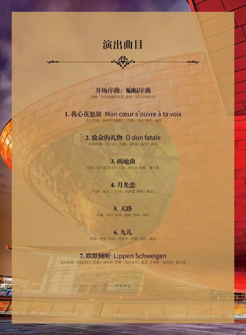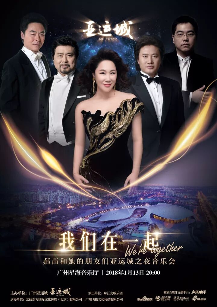 2018年1月13日,《我们在一起——郝苗和她的朋友们亚运城之夜音乐会》将于广州·星海音乐厅举行,届时女中音歌唱家郝苗将盛邀圈中前辈好友著名男高音歌唱家戴玉强、魏松、丁毅,为我们带来一场高品质的音乐会。本场音乐会特邀中央歌剧院艺术总监杨洋指挥、珠江交响乐团伴奏,众艺术家将倾力为朋友们打造一台高质量、高水准的古典音乐盛宴。