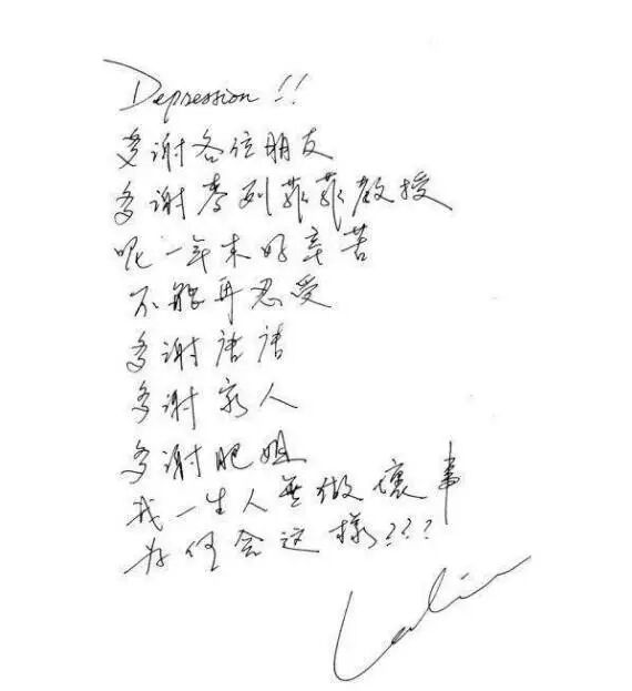当天晚上19点06分,张国荣被宣布救助无效死亡,一位天王巨星就这样坠落。这一天这一个愚人节,所有人心中都在想,这是愚人节,这是愚人节!现场的一份遗书这样写道:“Depression 多谢各位朋友 多谢麦列菲菲教授 一年来好辛苦 不能再忍受 多谢唐唐 多谢家人 多谢肥姐 我一生无做坏事,为何会这样?”