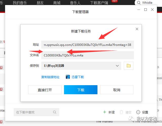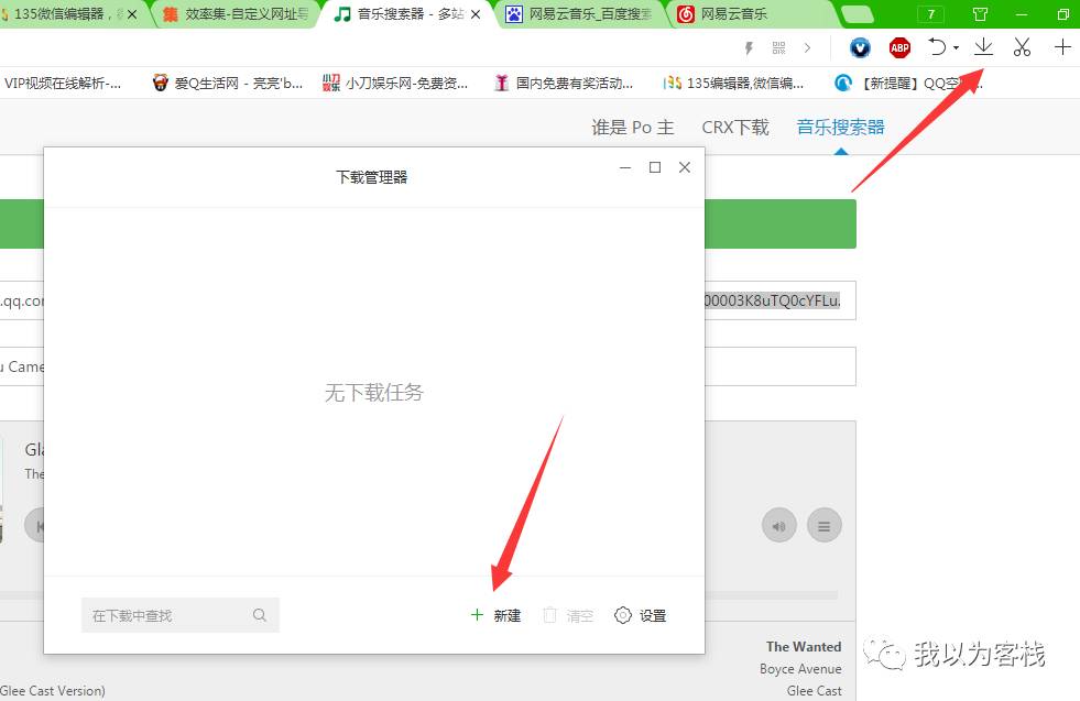 我们就发现可以播放,如果想要下载的话,我们在自己的浏览器里面新建下载(这里我用的是QQ浏览器,别的浏览器页面可能不太一样,不过都大同小异),随便一个浏览器或者下载器都有这个功能,我们把这里的音乐链接复制