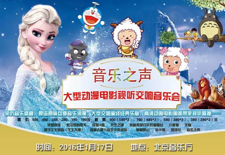 哆啦A梦、天空之城、别看我是只羊、小星星、狮子王、爸爸去哪儿...1月17日,北京音乐厅上演的《音乐之声-动漫电影视听音乐会》,由60多人的全编制交响乐团,结合大屏幕立体演绎,让孩子们在卡通动漫世界中受到高雅音乐的熏陶,麻麻粑粑们和孩子一起穿越回童年,进入动漫的世界!