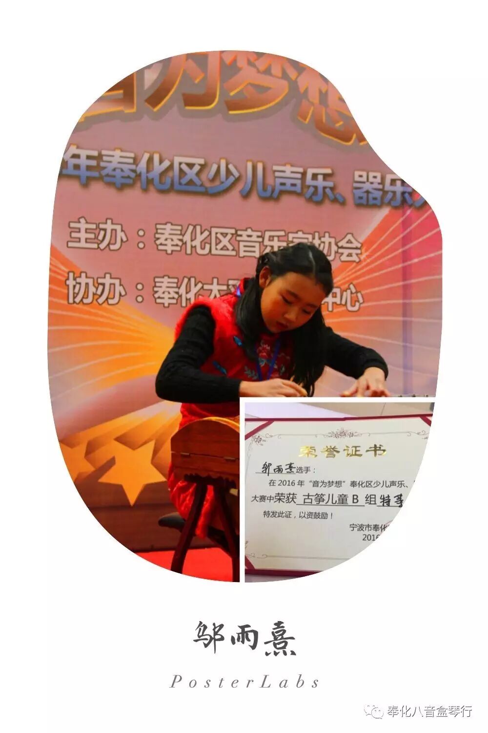 在这里祝贺八音盒古筝音乐艺术中心的小选手取得优异的成绩,特别恭喜邬雨熹小朋友获得儿童古筝B组特等奖,获得奖学金1000元。