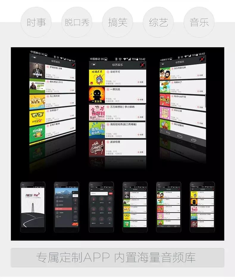 这款AD986随车听搭载专属定制APP,内置海量音频库,时事、脱口秀、搞笑、综艺、音乐150+W条免费节目让你畅听无阻。