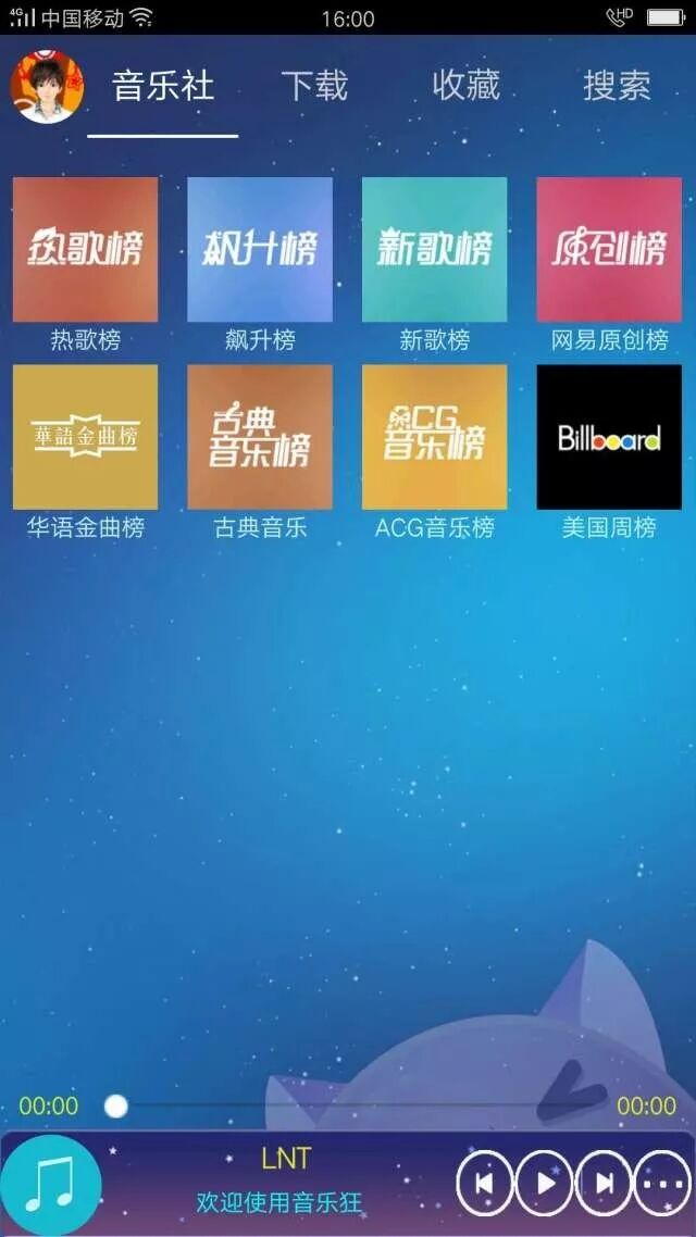 这个软件目前仅支持安卓系统,苹果系统的请飘过,下图为音乐狂开屏画面。
