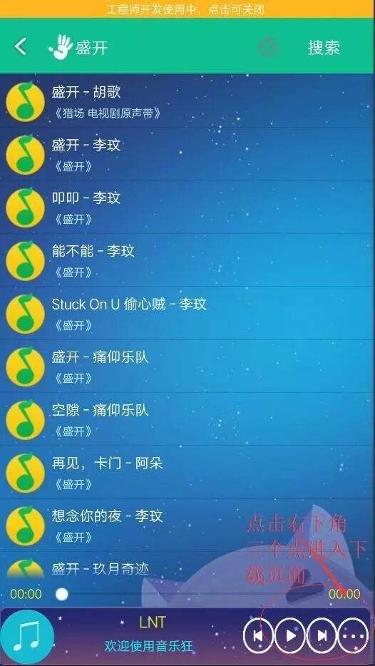 第三步:直接点搜索,查找歌曲《 盛开 》
