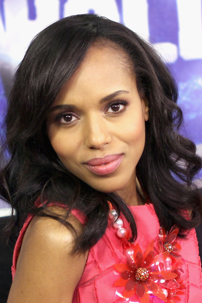 像Kerry Washington这样的偏分,可以柔化脸部线条,并且因为其不对称性使得脸部看上去不那么圆了。