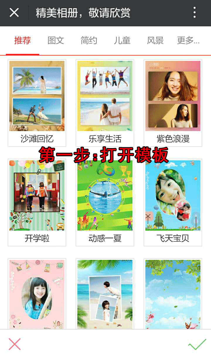 目前只有《紫色浪漫》、《乐享生活》、《沙滩回忆》三款才能添加文字,不过以后会有更多酷炫模板上新的,敬请期待哦!