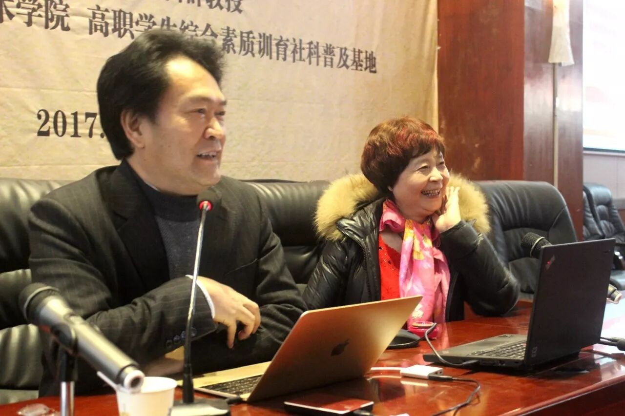 在学术大讲堂上,敖昌群教授携夫人张莉娟教授以诙谐幽默的交流方式,讲述了其音乐创作历程,展示了他们在音乐创作、音乐教育及音乐创新等方面的成果,与大家交流心得体会,并与同学们分享了自己创作的经典曲目,让大家在一片欢笑中受益匪浅。