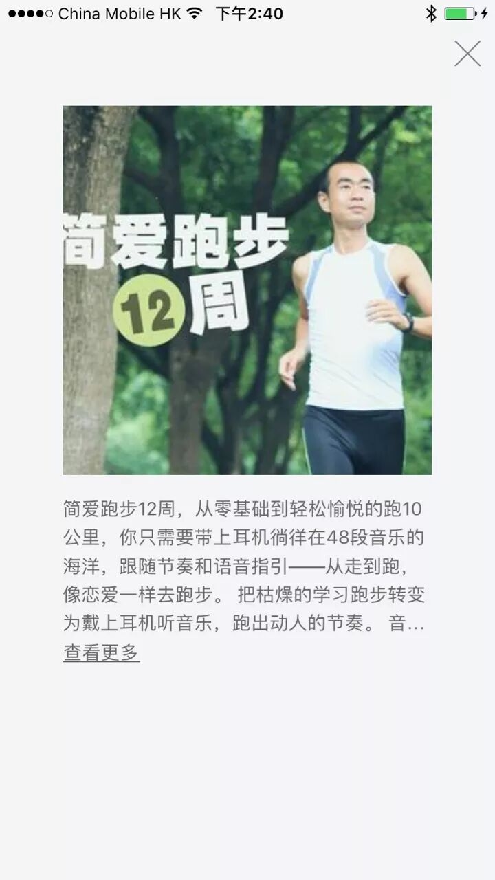 喜欢中文音乐的,推荐喜马拉雅中的“简爱跑步12周”,在适合音乐的指引下走跑结合,到48个音乐结束后就能跑完10公里,这种感觉非常棒。