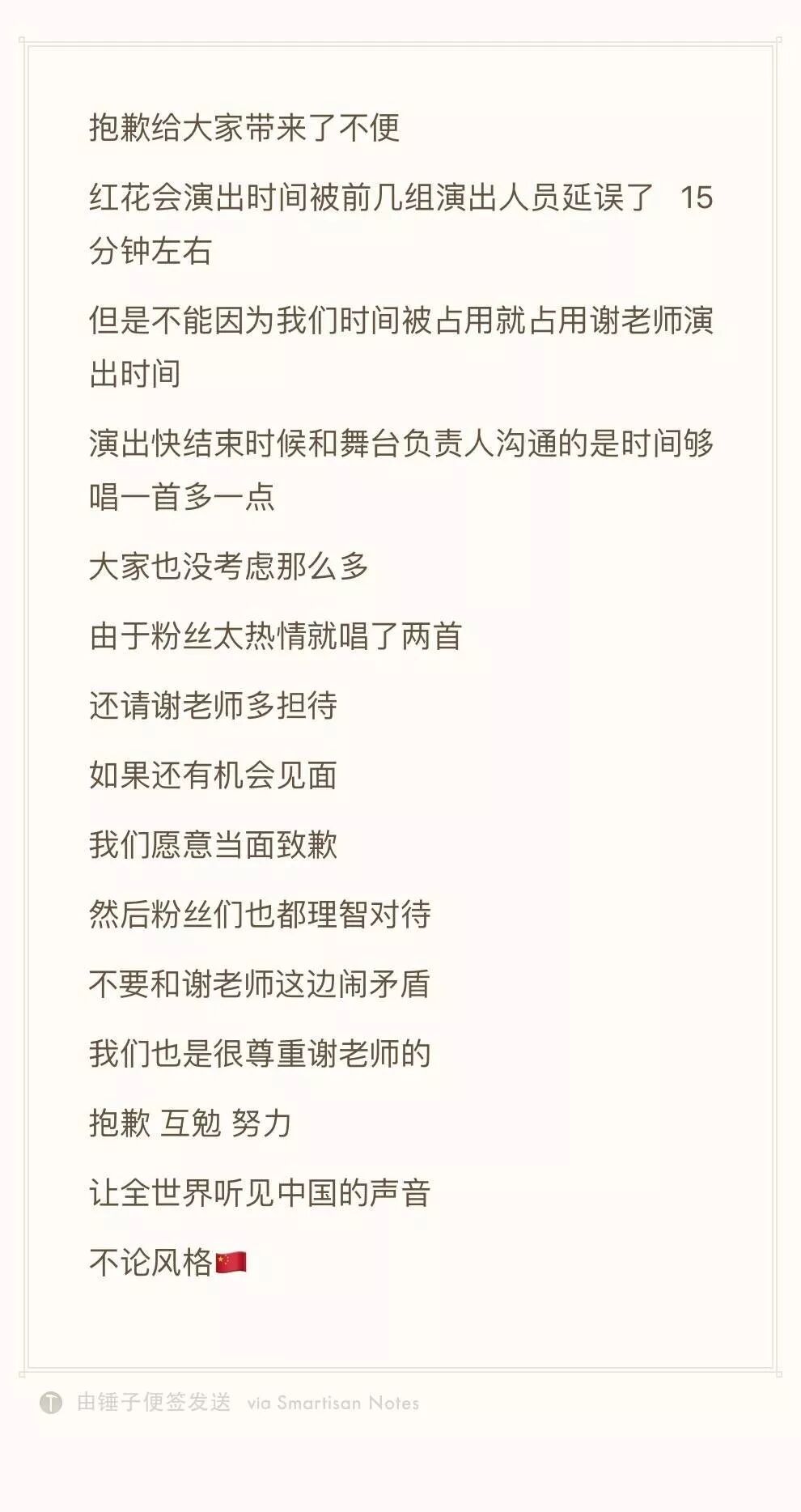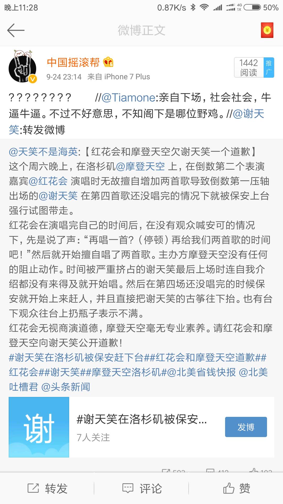 本来是件小事,因为就是一个公司的,调停一下就可以了,但是这位红花会的粉丝,什么话都是可以乱说的吗?老谢转发了,那此事应该不假,哪怕是你不了解摇滚乐,没听说过谢天笑,就能随随便便骂前辈野鸡????