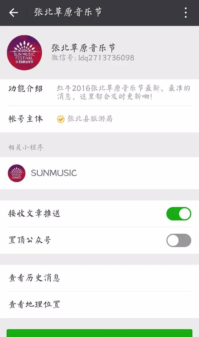 今年张北草原音乐节,SUNMUSIC新体验!既有贴心的相关事宜提示,又有个性方便的定制行程时间表,还有音乐节现场互动快捷通道,快点击SUNMUSIC右上角更多选项,将SUNMUSIC显示在微信聊天顶部或者添加到桌面吧,一键进入SUNMUSIC不能更方便!