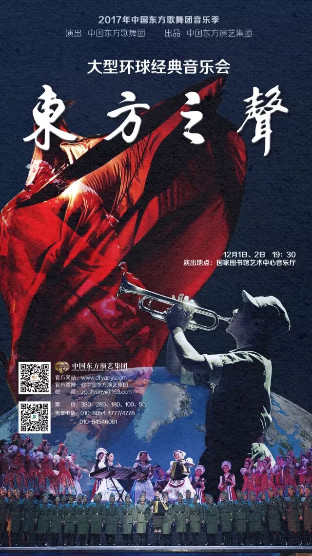 大型环球经典音乐会《东方之声》是中国东方歌舞团致敬经典、表现东方艺术特色、弘扬东方精神的大气之作,历经数论全国巡演,收获各地观众热捧。2017年《东方之声》将作为“东方音乐季”的剧目之一在国图音乐厅重新与北京观众见面。经过不断的打磨和调整,全新亮相的《东方之声》将更加突出音乐和人声的享受,融汇不同国家和地区的特色音乐,以东方的独特编排方式和舞台呈现,带领观众走进历史的回溯之旅,直面世界人民为和平无畏拼搏的奋斗历程,感受闪耀夺目的人性光辉。