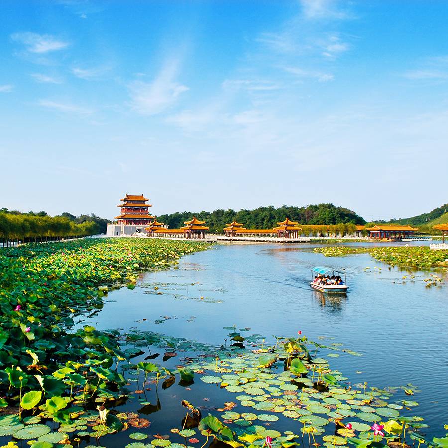 依海而建,因荷而美的中华荷花,300多种荷花摇曳生姿