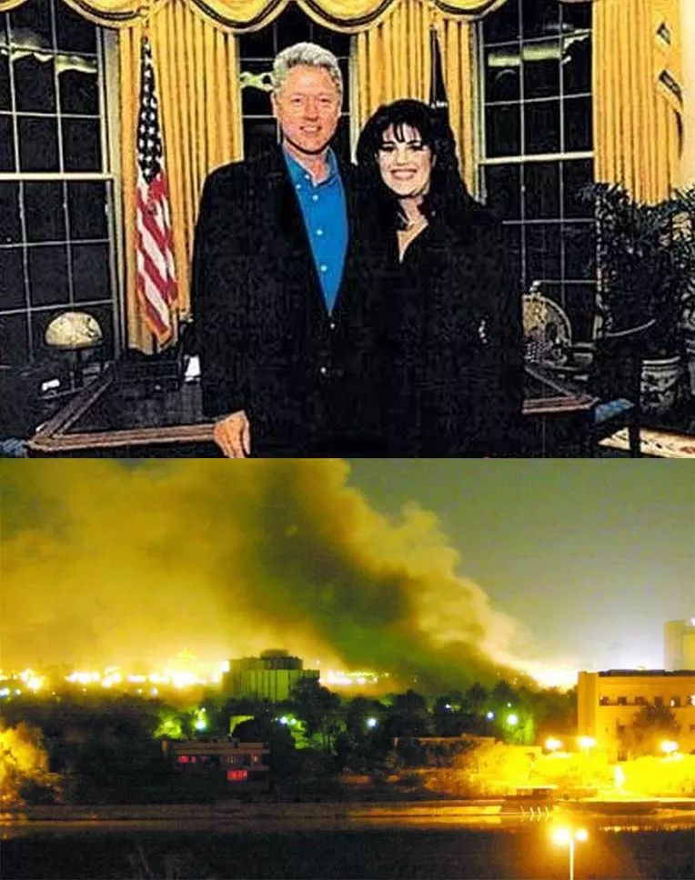 4个月后,提上拉链的克林顿宣布空袭伊拉克。