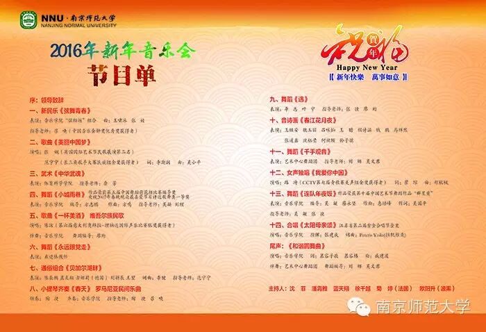 “南京师范大学2016新年音乐会”将于12月31日下午2:00在仙林校区新北区音乐厅精彩上演。